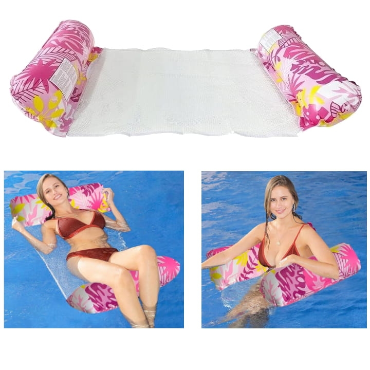 ✅ Dmuchany Leżak z Hamak Wodny 130x70 cm – Materac do Pływania na Basen z Siatką – Różowy