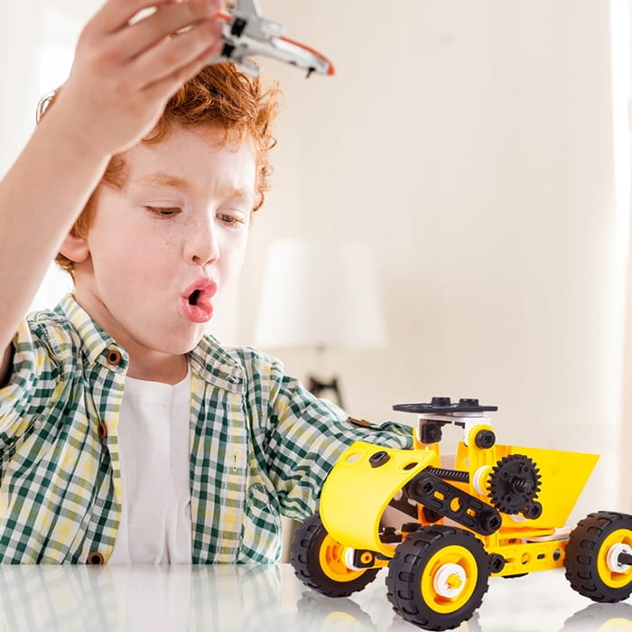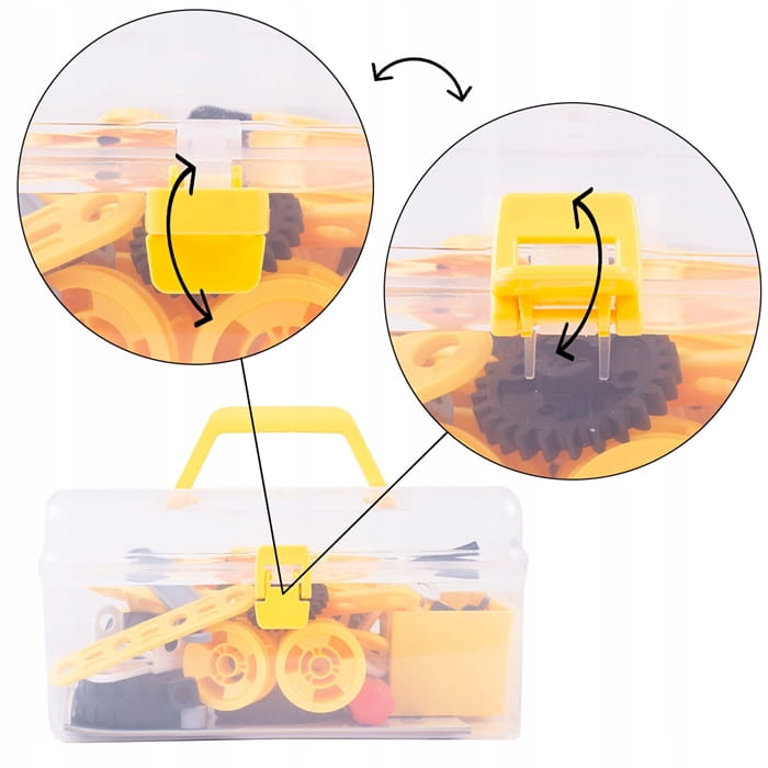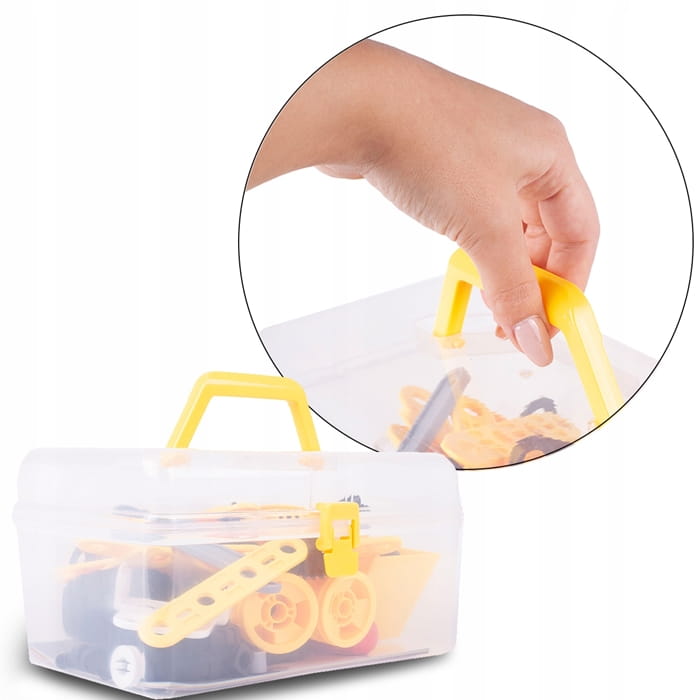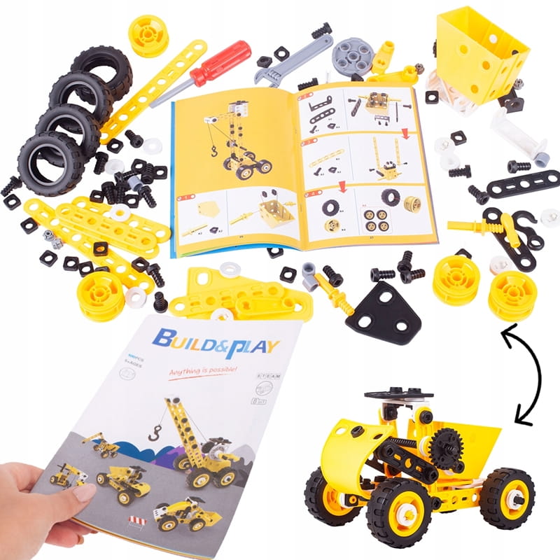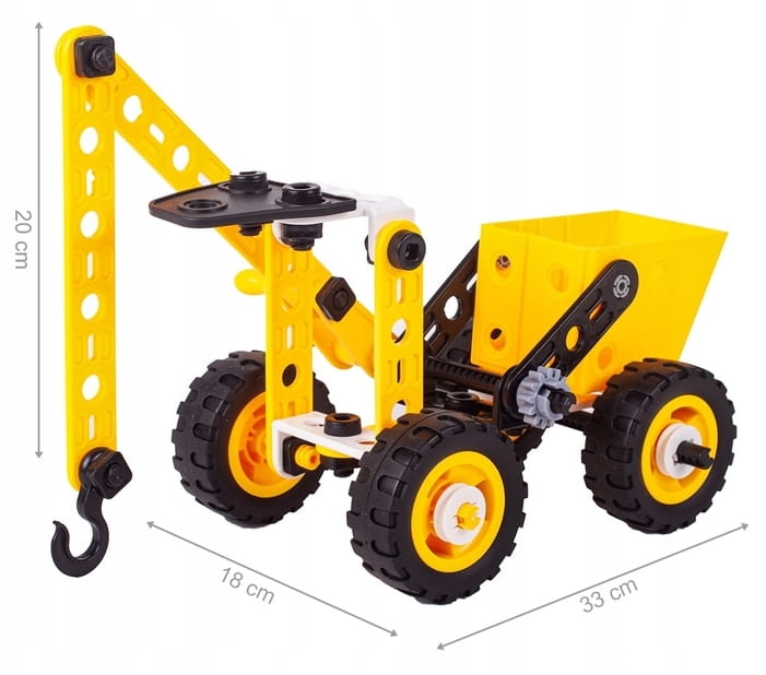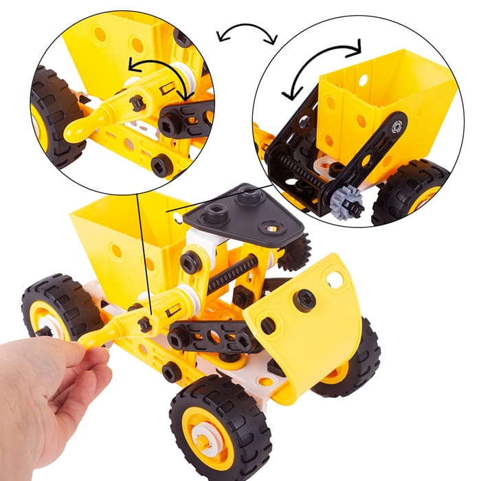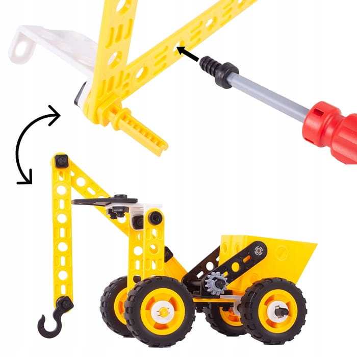 ➡️ Zestaw konstrukcyjny to świetna propozycja dla każdego małego majsterkowicza i fana techniki. Dzięki różnorodnym elementom dziecko może zbudować terenowy samochód, dźwig, wyścigówkę, a także wiele innych pojazdów według własnego pomysłu.
