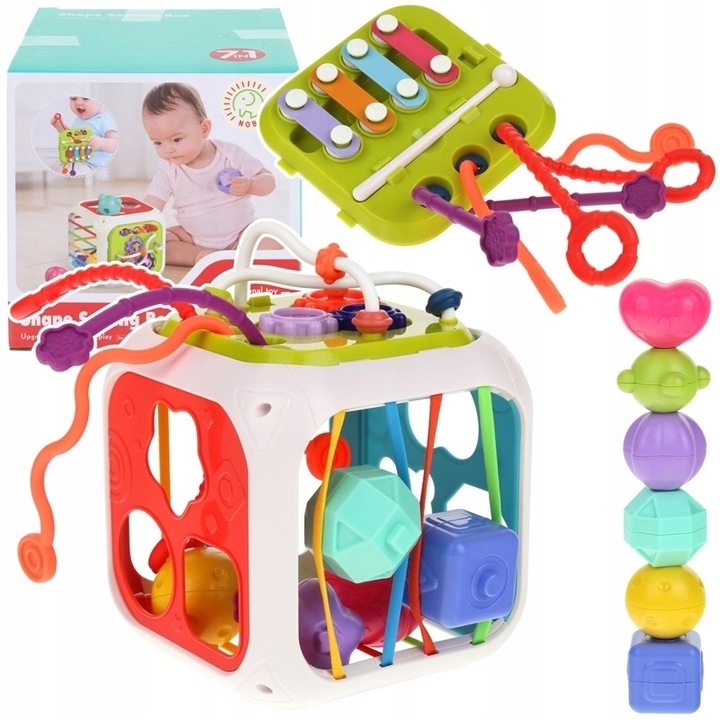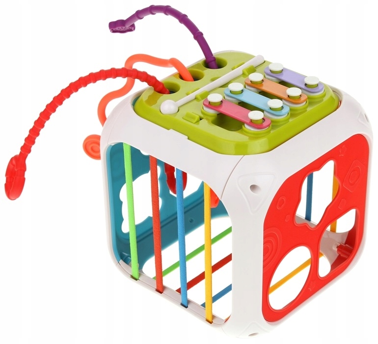 Kostka edukacyjna sensoryczna 7w1 klocki sorter cymbałki