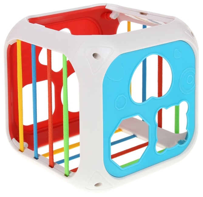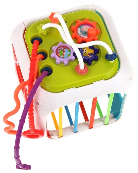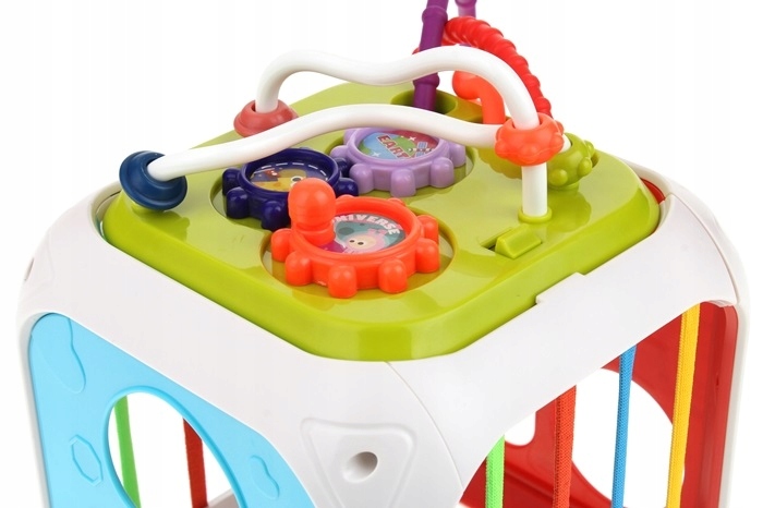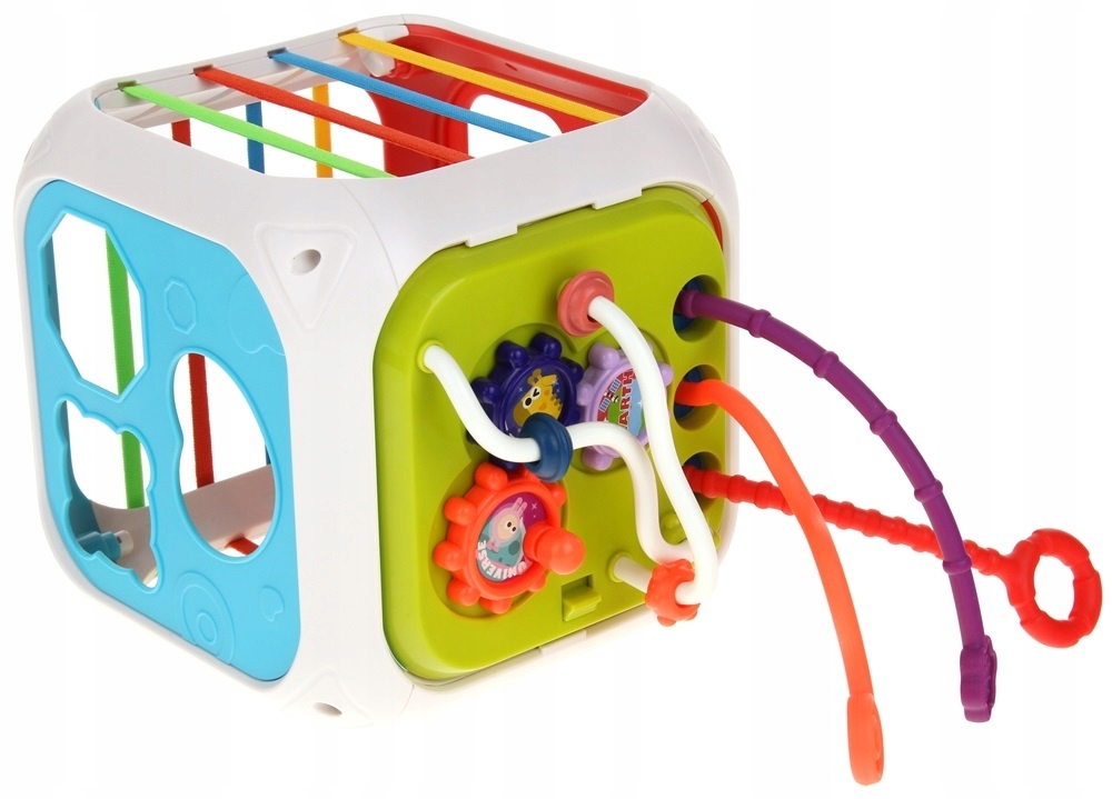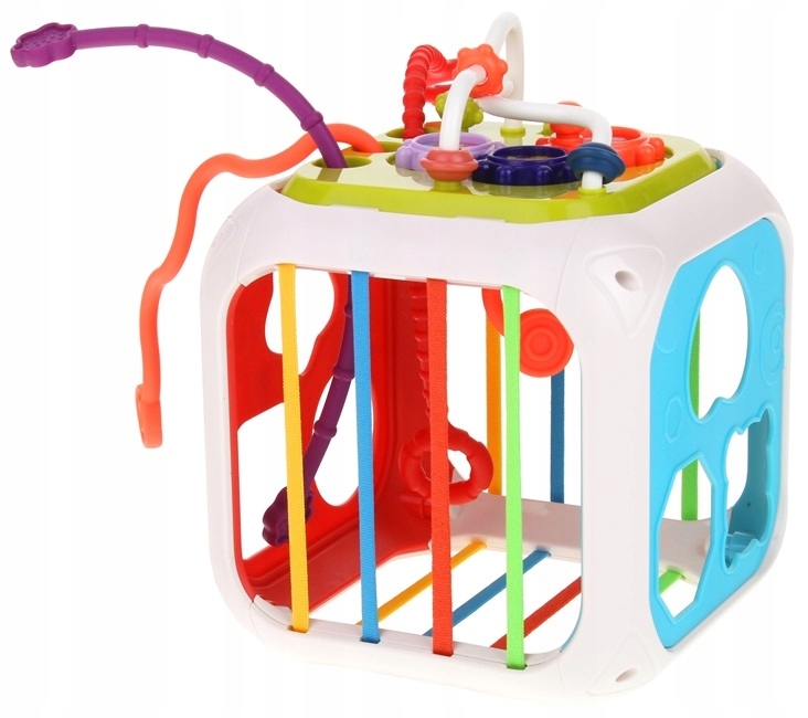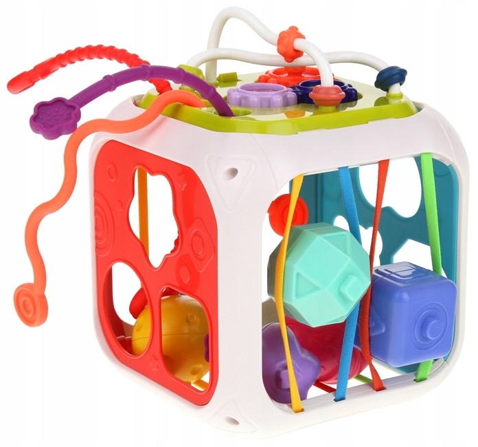 - SORTER KSZTAŁTÓW - 2 ścianki kostki to sorter z otworami o różnych kształtach.