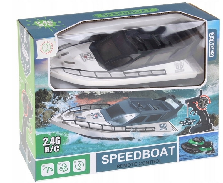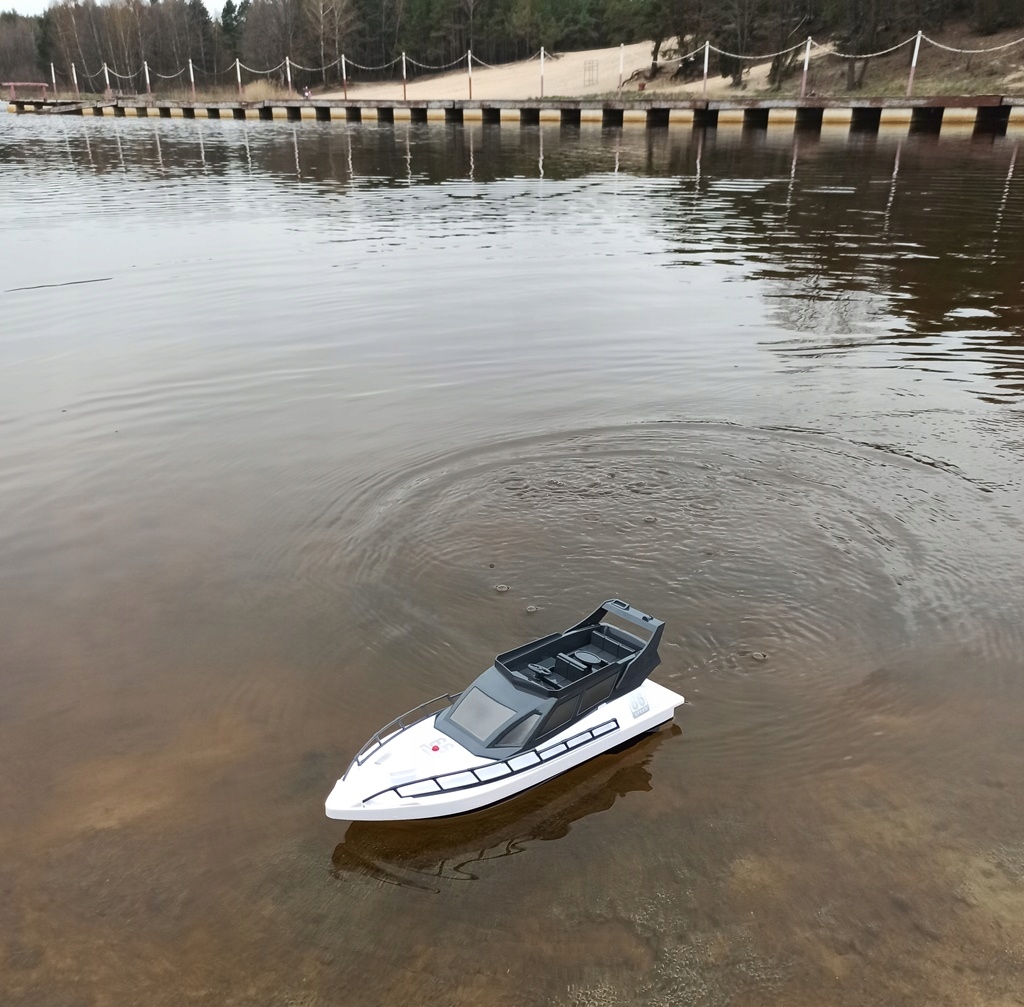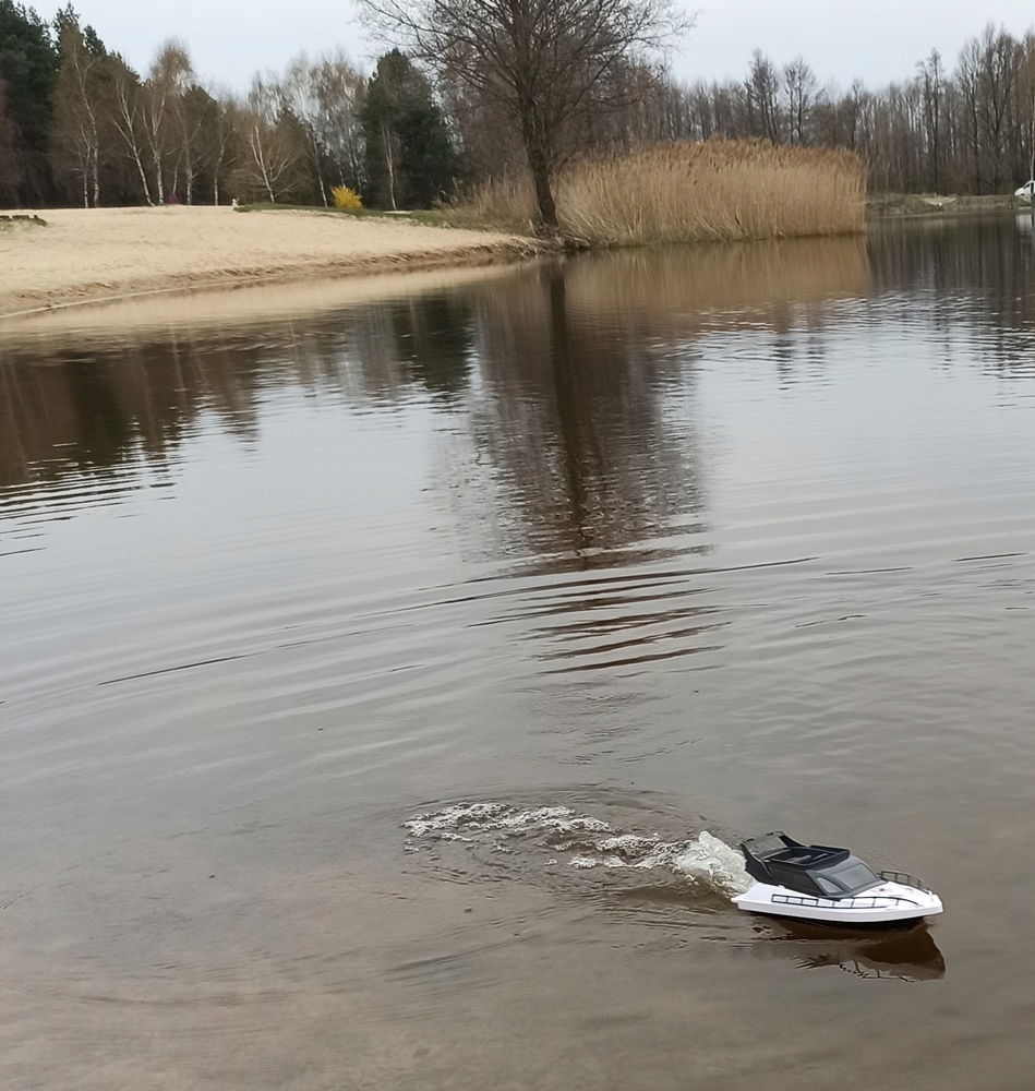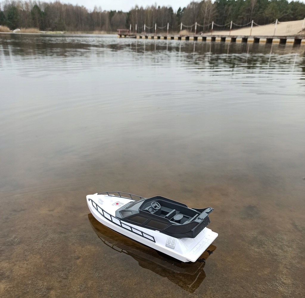 ✔️ zestaw: motorówka RC, pilot, kabel USB, akumulator