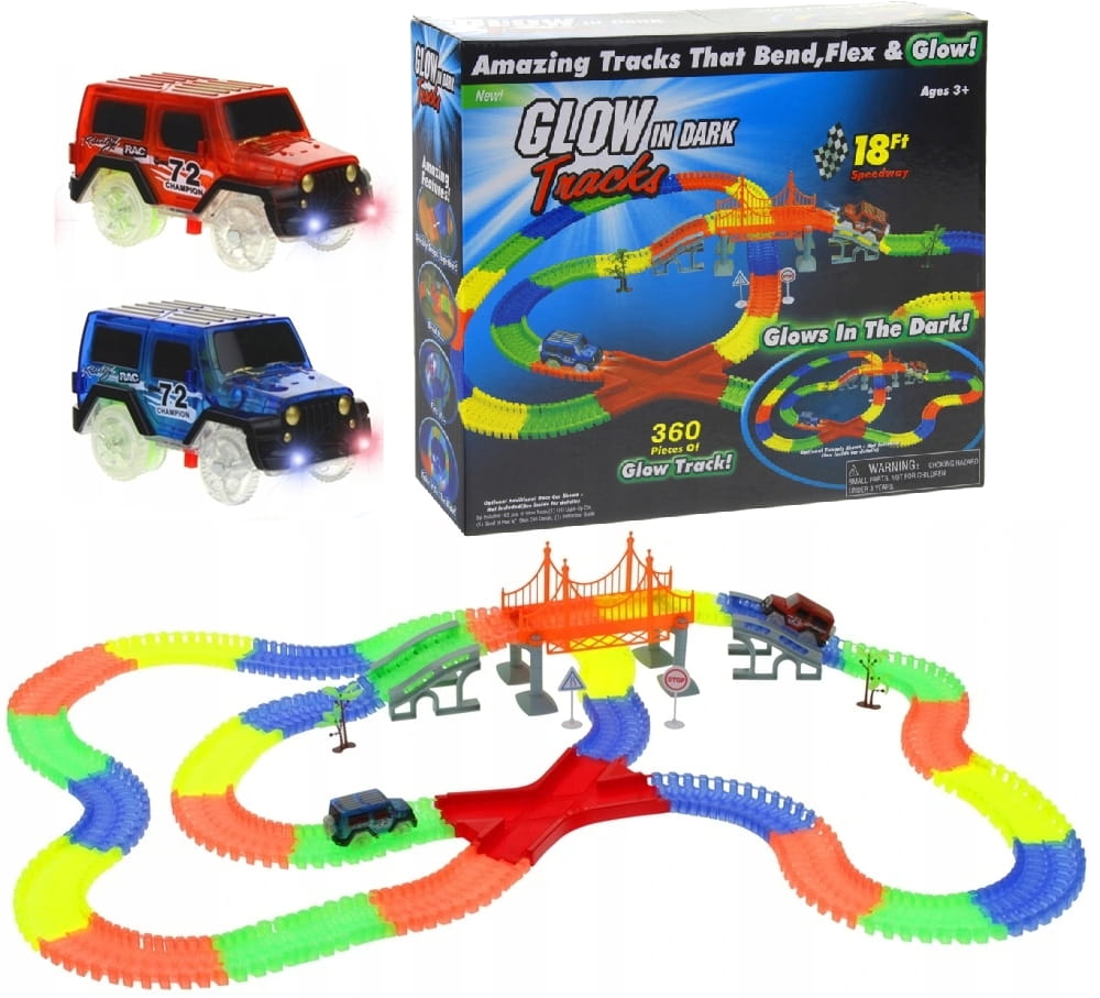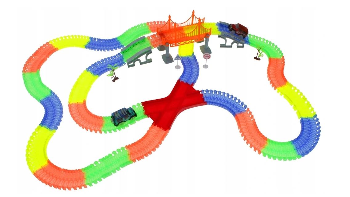 ✅ Świecący Tor Samochodowy Magic Track – 360 el., 2 Autka LED, 450 cm